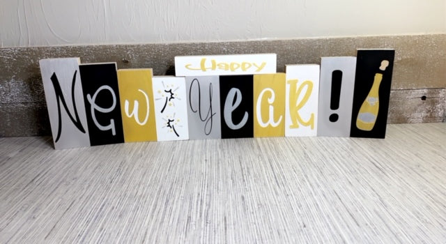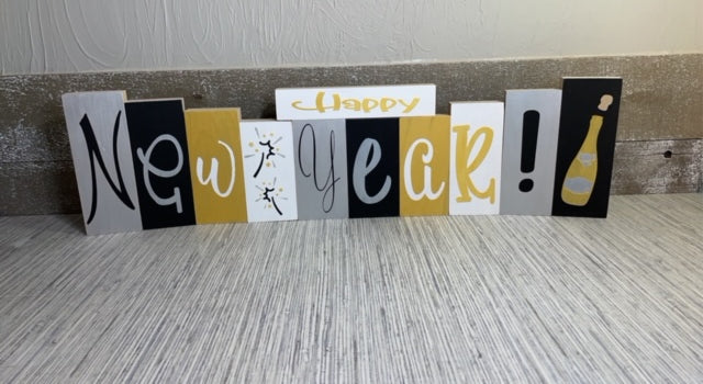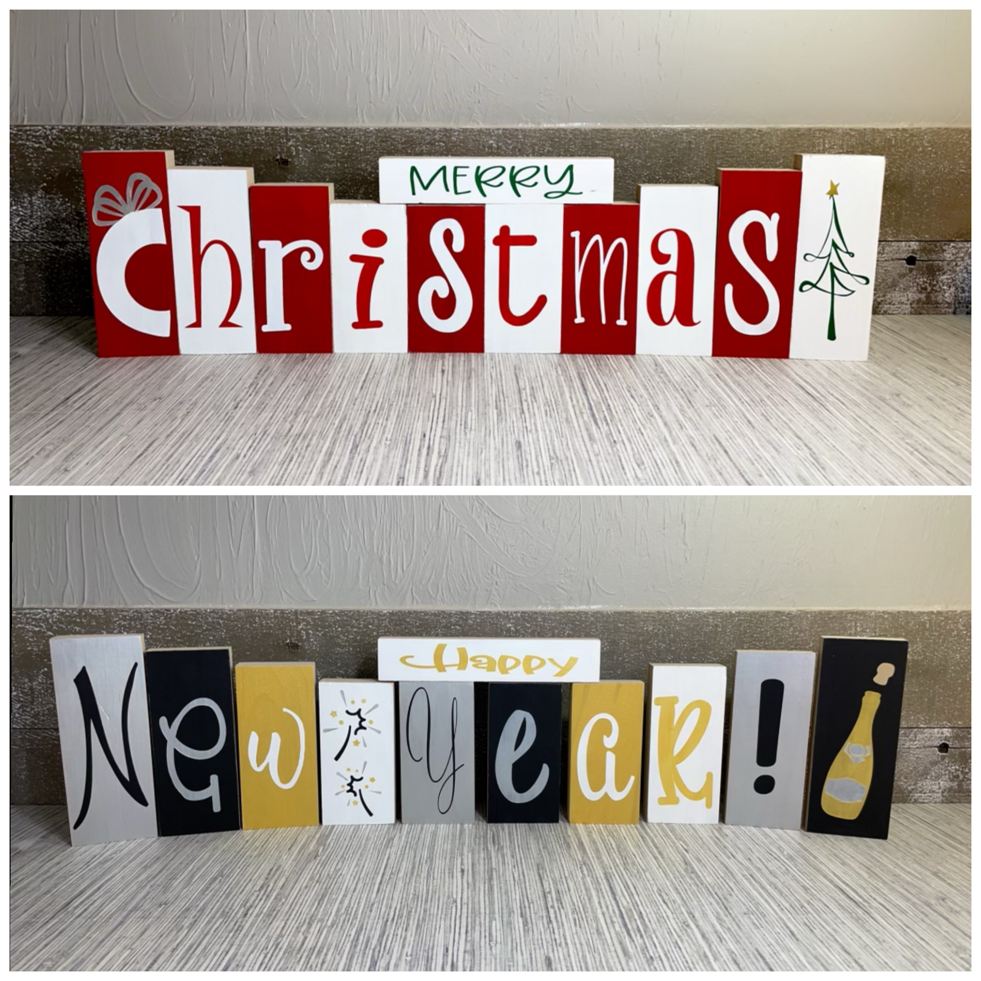 Listing is for (1) Merry Christmas on one side and Happy New Year on the other side wood blocks. There are 11 blocks all together. **SET IS REVERSIBLE** Completely hand painted.