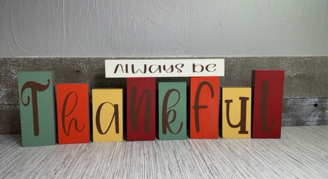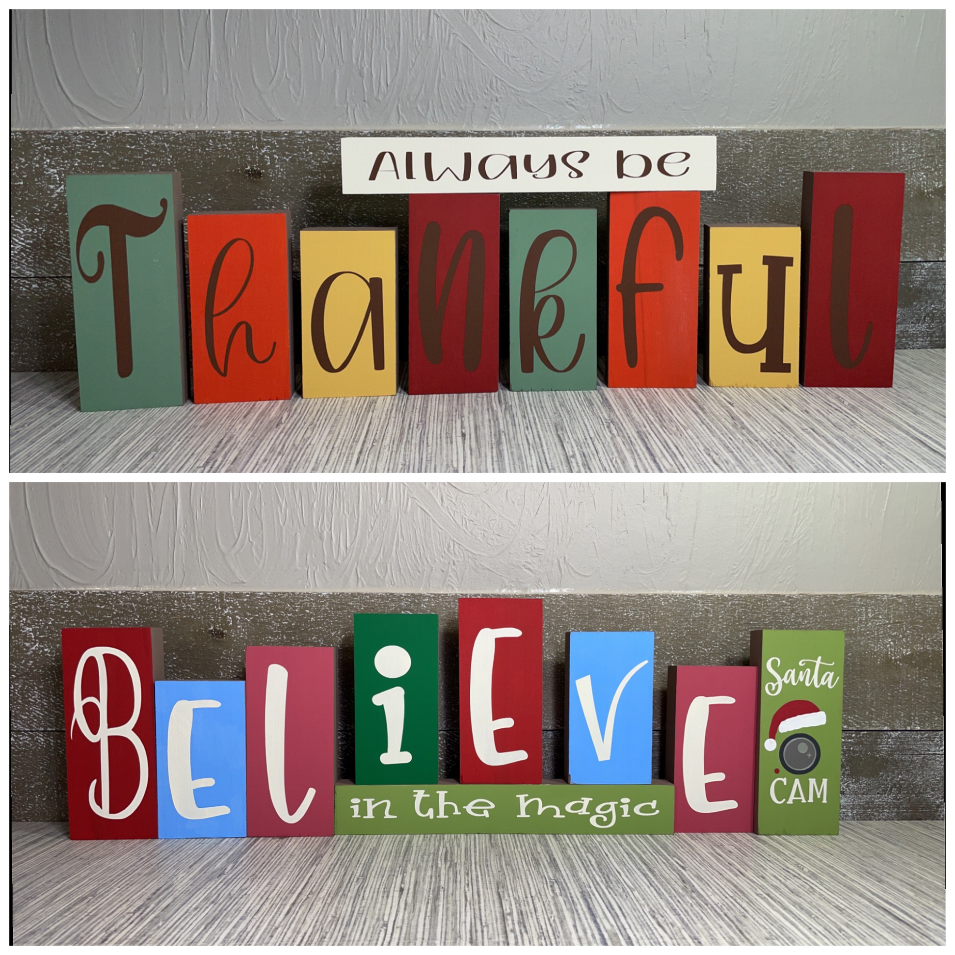 Listing is for (1) Always be Thankful on one side and Believe in the Magic on the other side wood blocks. There are 9 blocks all together. **SET IS REVERSIBLE** Completely hand painted.
