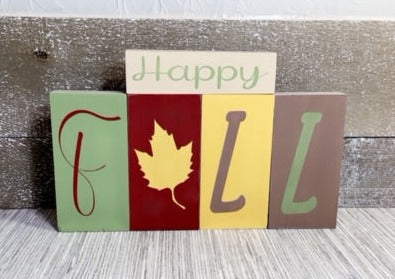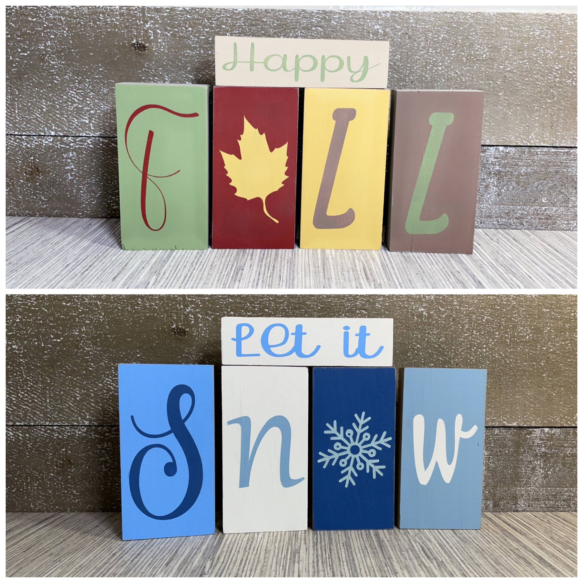 Listing is for (1) Happy Fall on one side and Let it Snow on the other side wood blocks. There are 5 blocks all together. **SET IS REVERSIBLE** Completely hand painted.