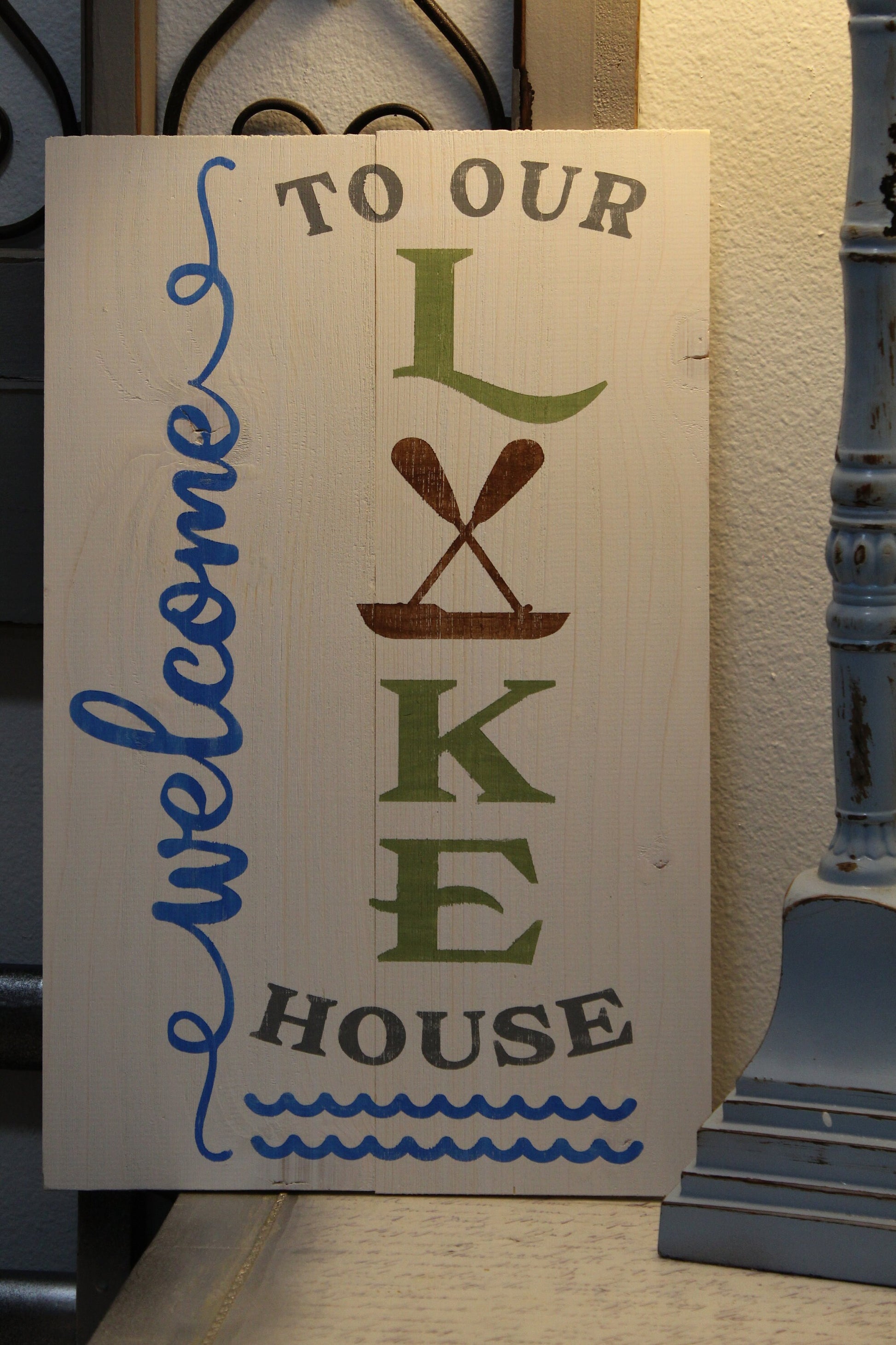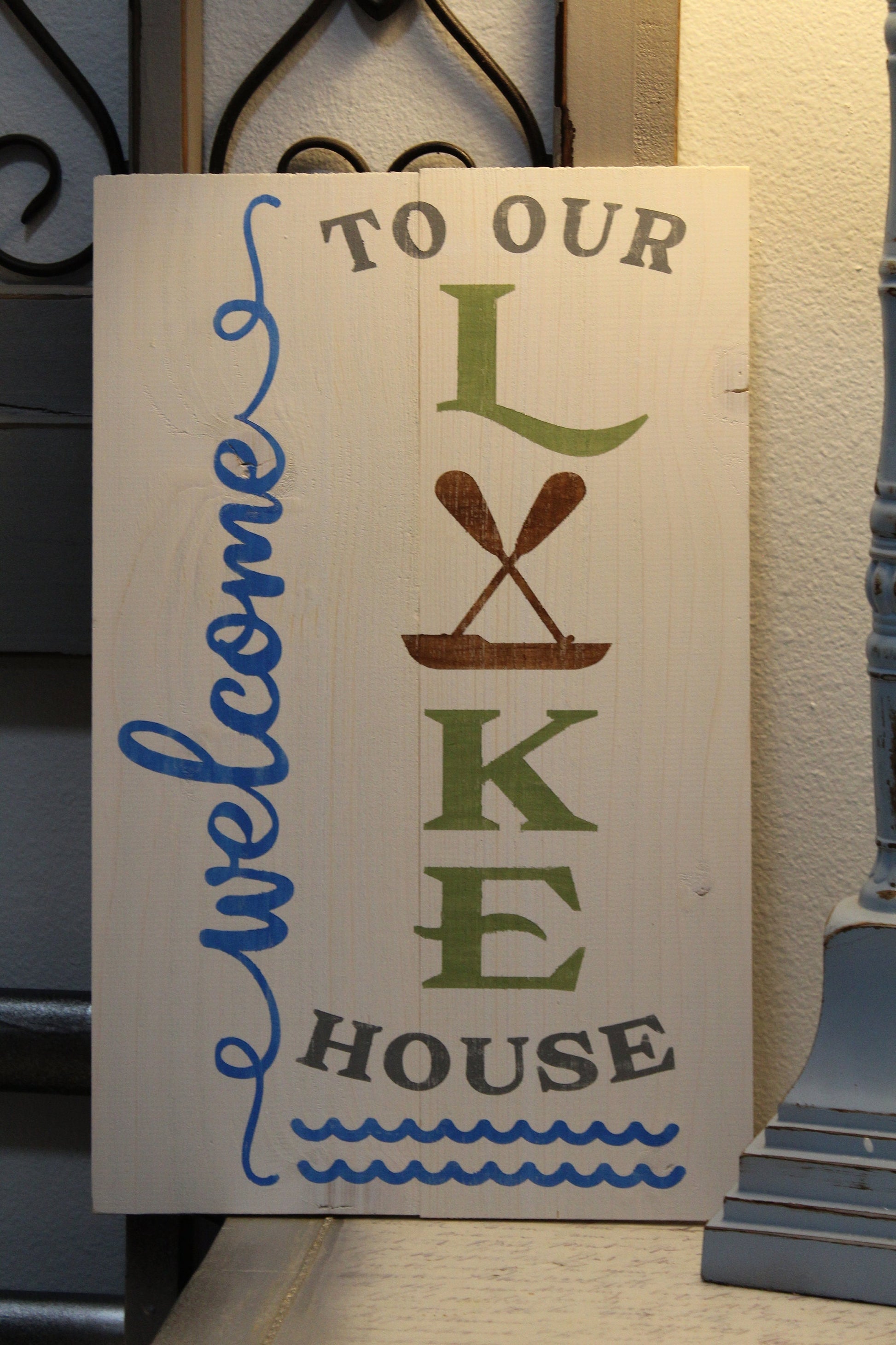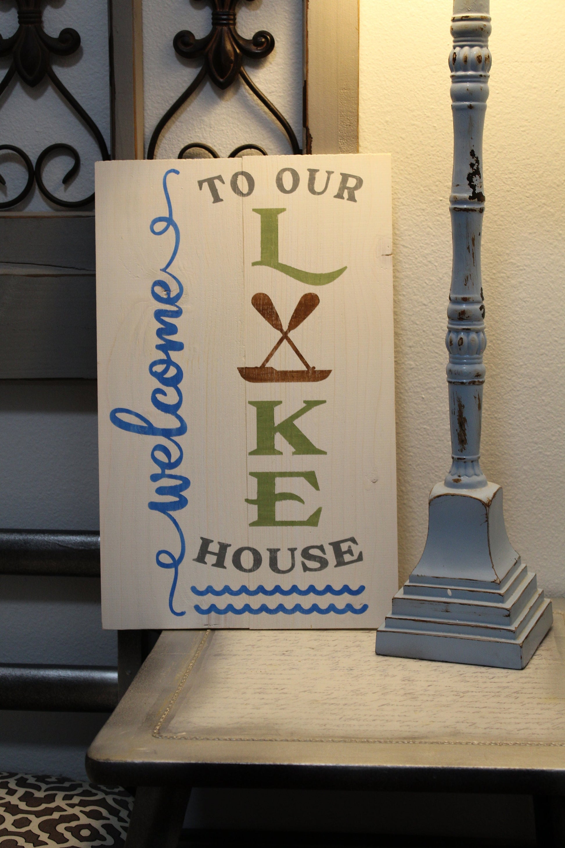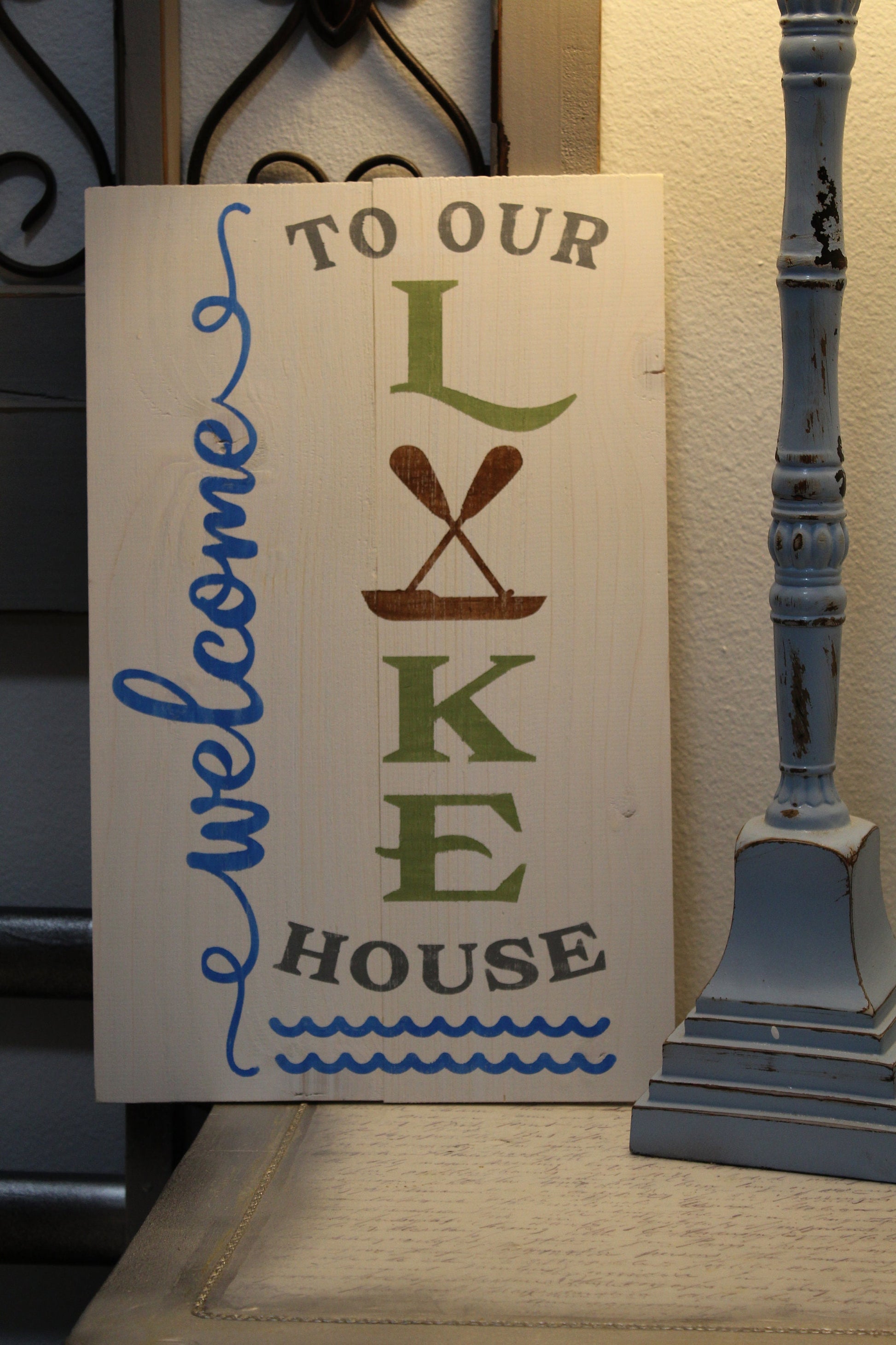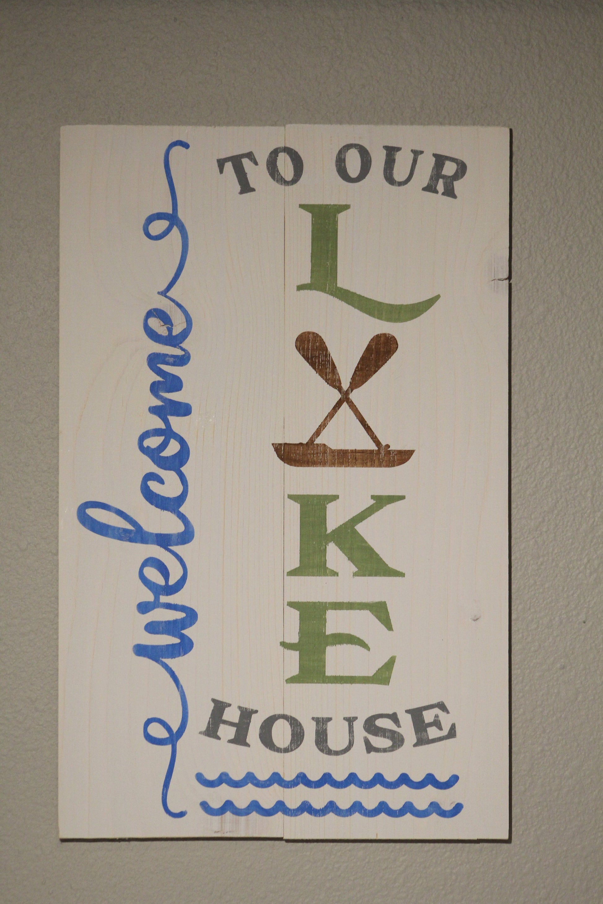 All of our signs are hand cut and painted. Each one is made to order and can be customized. This Welcome to our Lake House sign is roughly 10" x 16". You can lean it as part of a display or hang it on the wall. Can also be personalized.