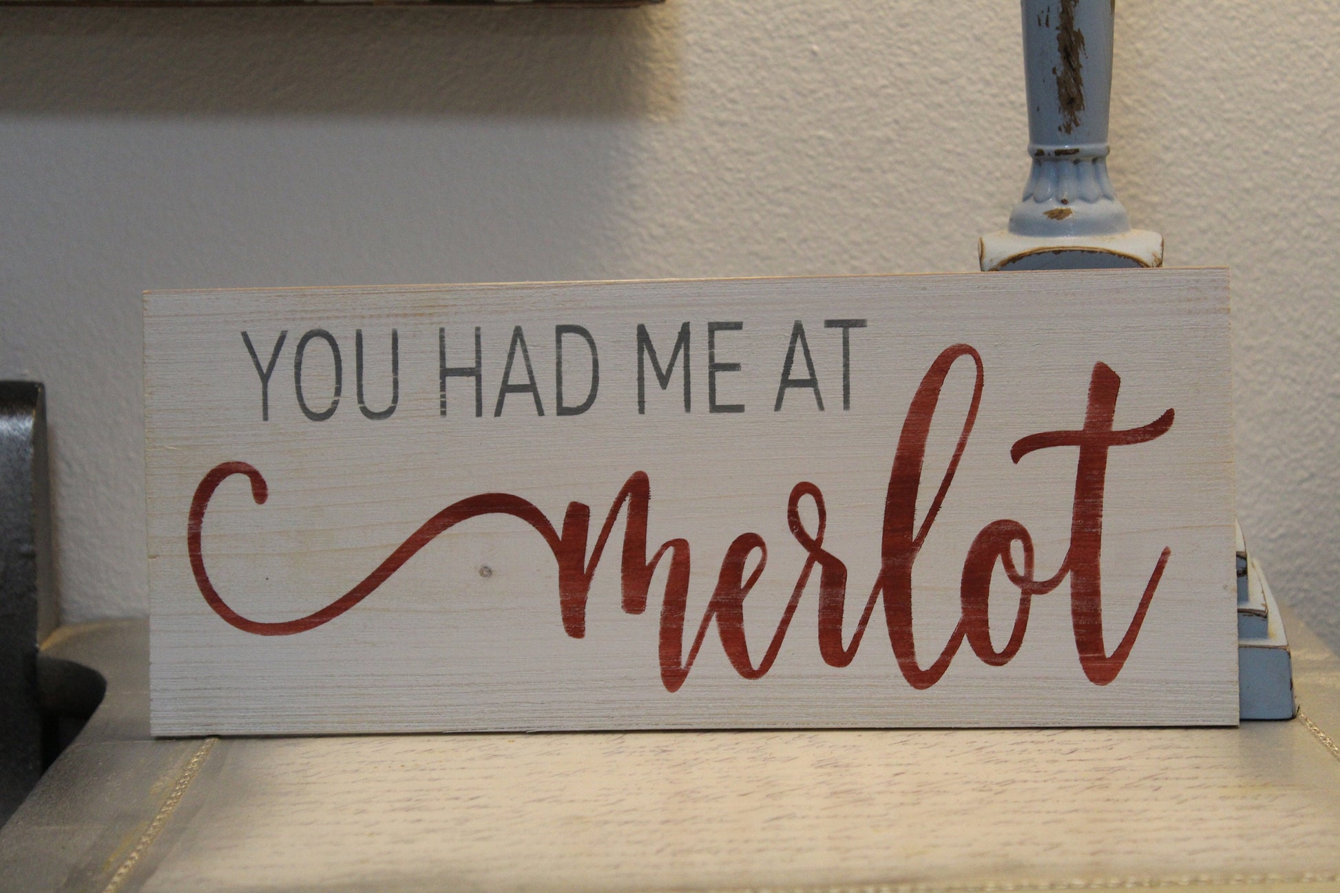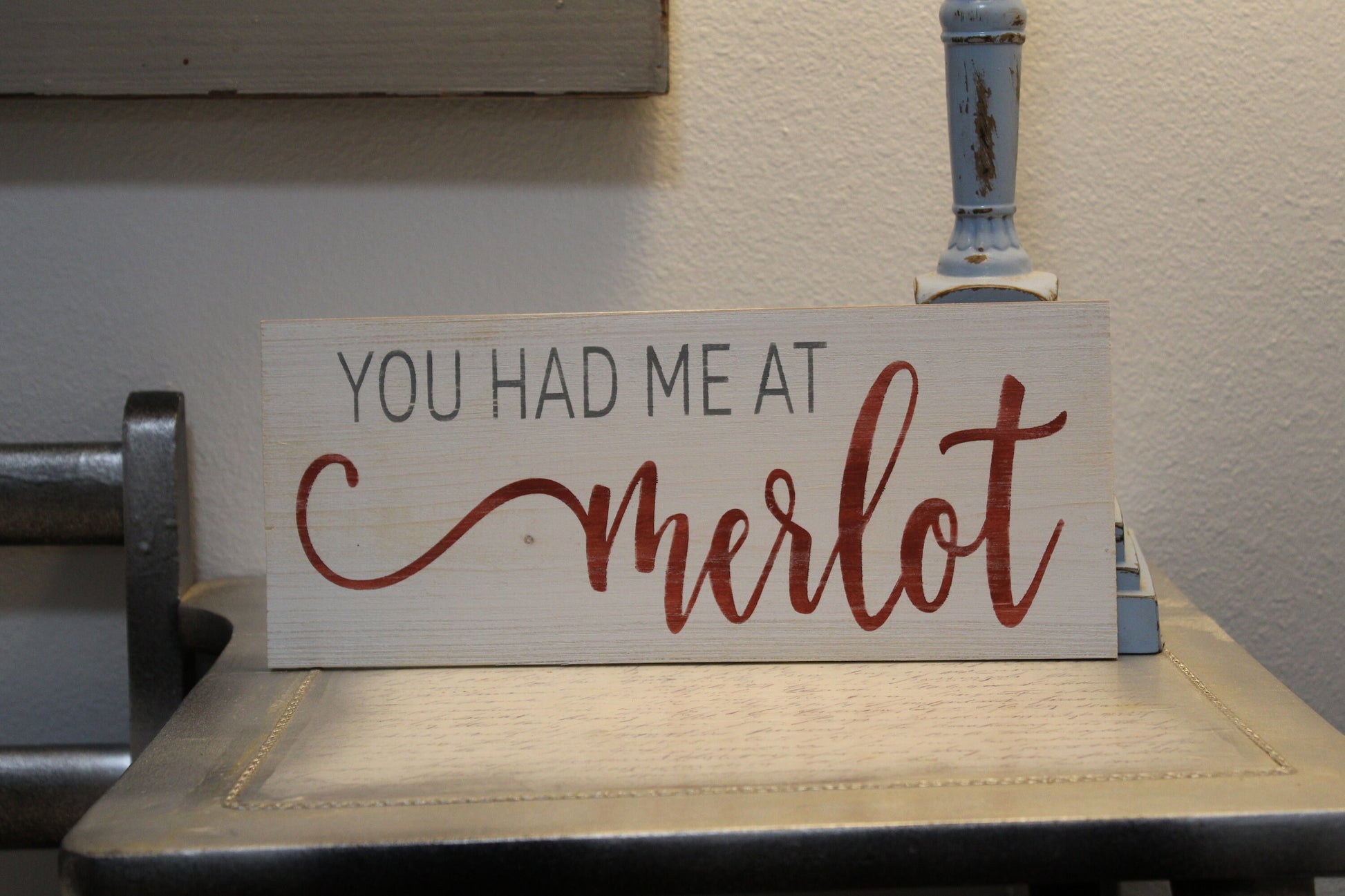 All of our signs are hand cut and painted. Each one is made to order and can be customized. This You had me at Merlot sign is roughly 5" x 12". You can lean it as part of a display or hang it on the wall. Can also be personalized.